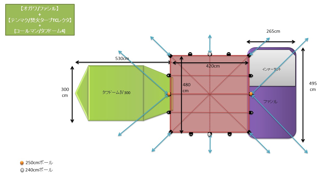 ・メインタープポール250cm*2+サブタープポール*2を使ったタトンカ張り