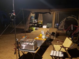 『大洗サンビーチキャンプ場』2日目。4時頃の気温は約20℃。 (function(b,c,f,g,a,d,e){b.MoshimoAffiliateObject=a; b[a]=b[a]||fun …