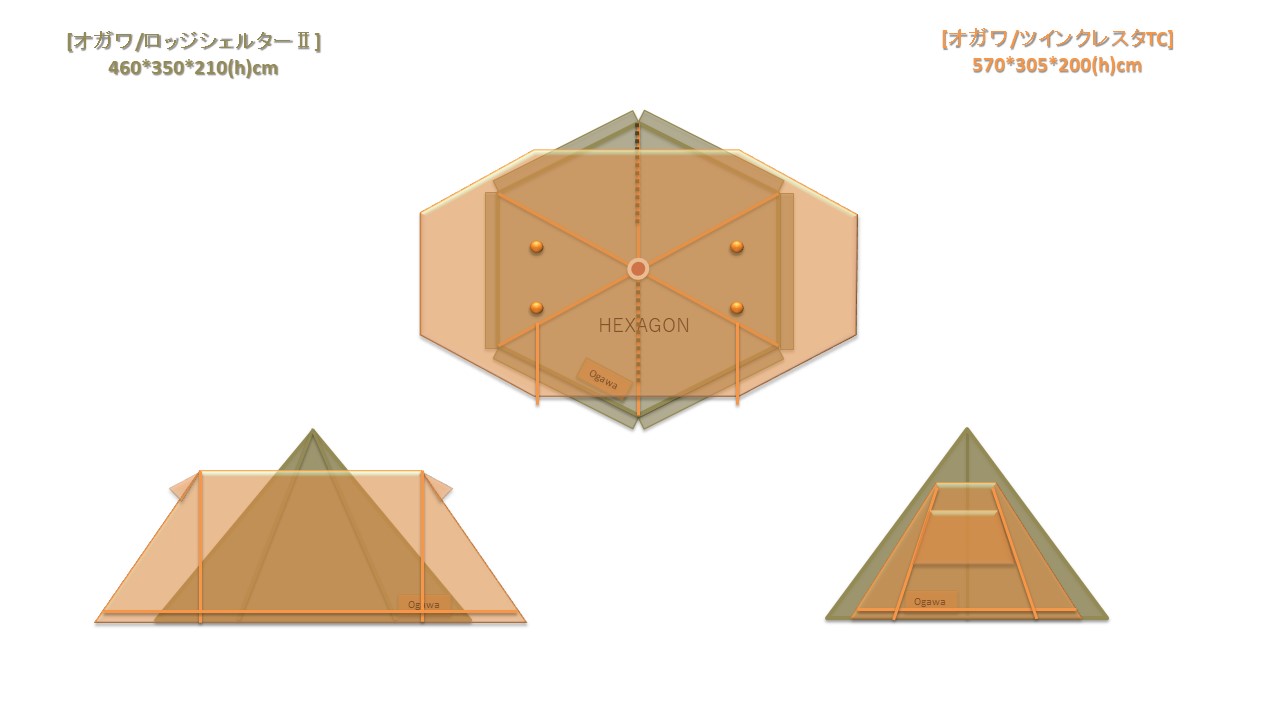 [オガワ/ツインクレスタTC]を我家の所有幕[オガワ/タッソTC]及び[オガワ/ロッジシェルターⅡ]と比較してみた。
