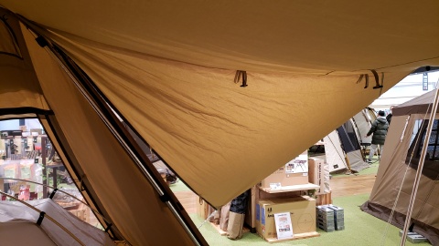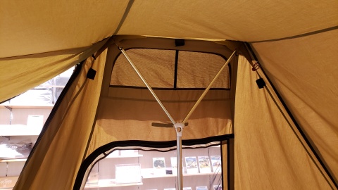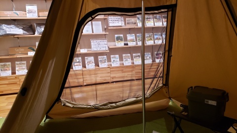 [オガワ/ツインクレスタTC]に展示を見てきた。ポリコットン生地の質感は良く特徴的なY字ポールによる上部空間の広さ、短辺側のメッシュパネルは魅力的!でもソロ幕としては少し大きく最適使用人数はデュオといったところかn。既にソロ幕として[オガワ/タッソTC]がある我家にはニーズはないのだが…非常に魅力的な幕であることは変わりなく物欲の虫が疼く…なので実際には仮に購入したらという妄想をしてみた。