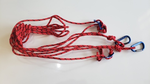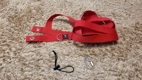 ウィンドスクリーン固定用に補完。自在金具とカラビナを追加して二又にして使用予定。