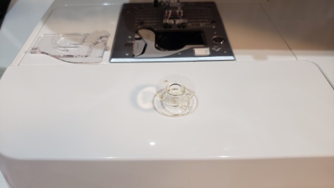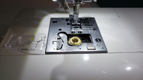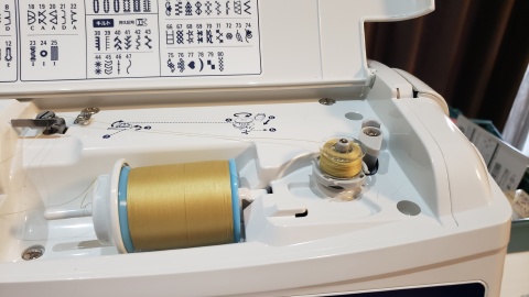下糸の準備。取扱説明書だけだと分からいが動画と併せることで戸惑いながらもセットすることが出来た。