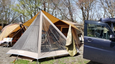 1. […] ・Year2022-7th-CAMP#79@北軽井沢スウィートグラス 当初、遮光性の高いポリコットン生地の[Soomloom/レクタタープTC300*385cm]を使用する予定だったが雨天設営となってしまったため、[Soomloom/レクタタープNL300*385cm]を設営。雨の時間が長いため更に[ユニフレーム/REVOフラップ2]を追加し雨除けスペースを拡張。セッティングテープの干渉音を防ぎつつ、強風時の耐久性も鑑みるとメインタープポールは前方250cm/後方220cmが良いかもしれない。 […]