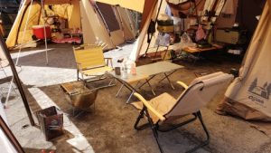 レクタタープのオガワ張り&REVOフラップのW使用でタープ下の基地感が増す!