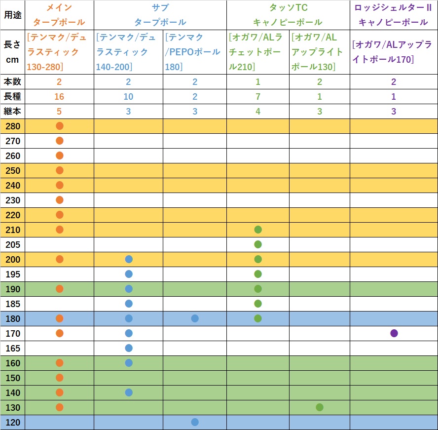 [テンマクデザイン/デュラスティック]の導入により我家のポール構成も以下の通りUpdate。