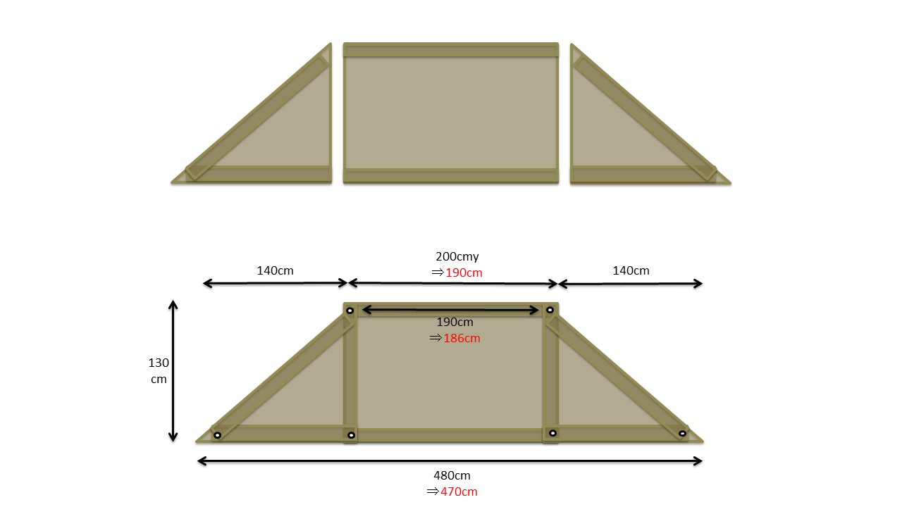 サイドウォールを再採寸したところ140cmでOK。それを踏まえて設計図を改めて起こしてみたのがコチラ。冬シーズン迄にはポリコットン生地で本作成と行きたいところ。クリアウォール化版も出来きれば冬キャンが快適になりそうだ。