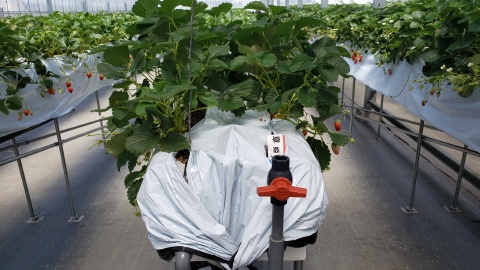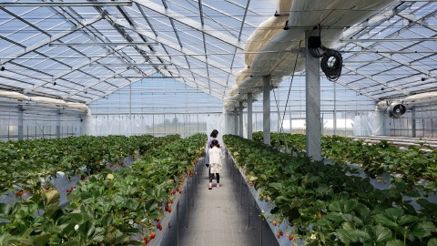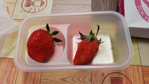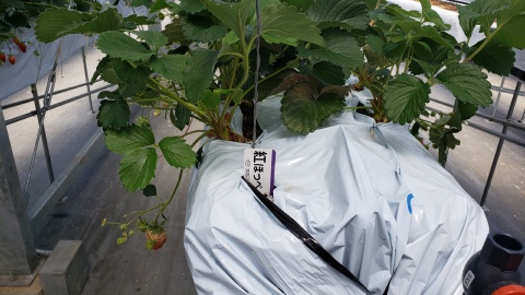 娘の苺狩り初体験!品種は“章姫”と“紅ほっぺ”の2つ。スタッフさんによると苺狩りの旬は1~2月で粒も大きくて美味しいのでオススメとのこと。来年はその季節に再訪したい。
