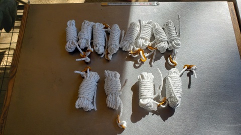 [オガワ/フィールドタープレクタTC]に付属の張り網(ガイロープ)。張り網(短)が8本、張り網(長)が4本の計12本。