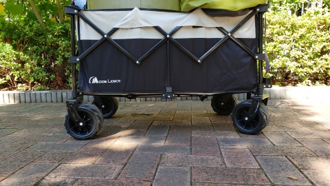 出発は娘もプール教室が終わってからとなるため8時半過ぎ。初めてキャンプギアの運搬に[MoonLence/幅広大型タイヤキャリーワゴン156L]を使用したがボトムセンターが撓むことなく使用することが出来きた。[コールマン/アウトドアワゴン]だと結構撓んでしまった経験があり懸念していたがフレーム剛性は結構強い印象を受けた。