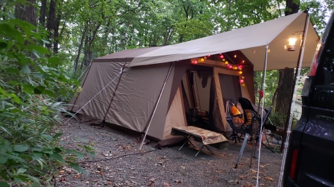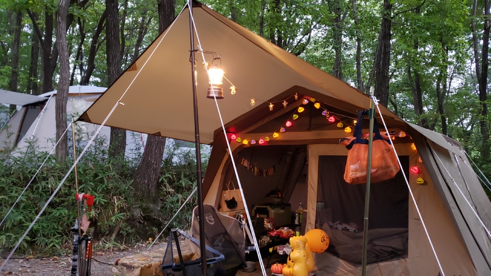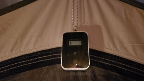 21時頃の幕内温度は18℃、幕外温度は13℃、スマホ現在地気温は15℃。湿度があるからか昨日より暖かく感じる。