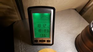 18時頃の幕内温度は18℃、幕外温度は14℃。入口開放時。