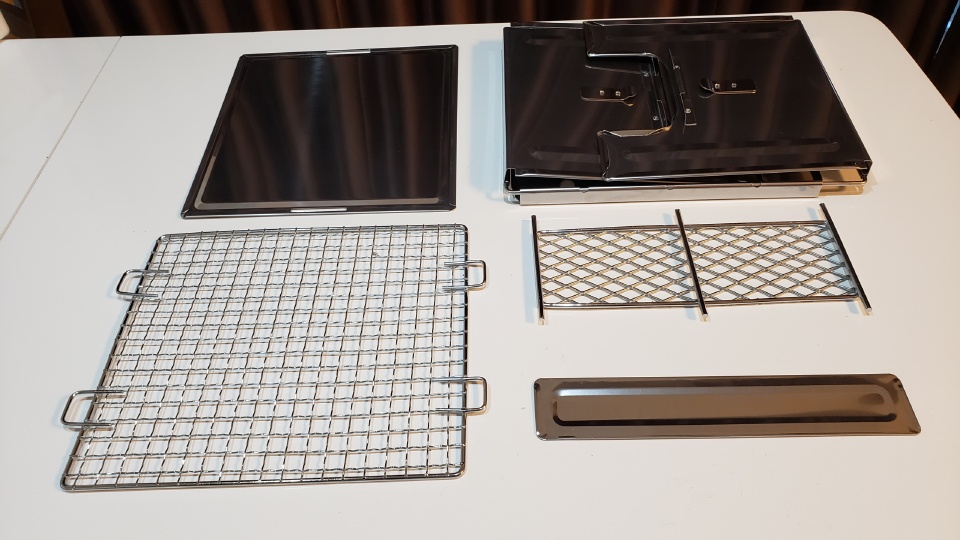 構成パーツ。焼網は100円ショップのものよりはしっかりしているが、耐久性が高いとまでは行かないかな。