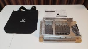 外寸45*30*19.5(h)cm/収納寸 45*30*1.6(h)cm/重量2.5kg。2段式の低めのローテーブル。焚火及びBBQグリル周り、もしくはジャグ台として使用予定。
