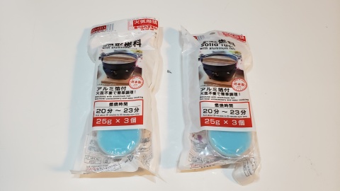 自宅にストックしておいた固形燃料をハードコンテナに保存しておいたのだが、夏の厚さで溶けだしてしまいすべて破棄(>_<)。固形燃料は自然気化で小さくなってしまい火力が落ちるのでその都度100円ショップで購入した方が良い。