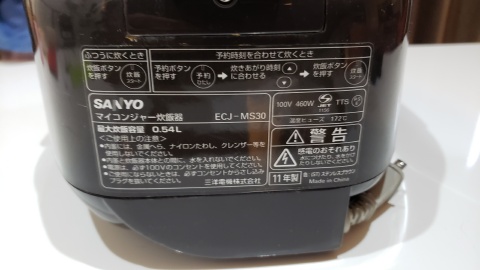 10年以上我家の炊飯を担ってくれた2010年12月発売の[SANYO/マイコンジャー炊飯器0.54L ECJ-MS30]に感謝の意を示すm(__)m。