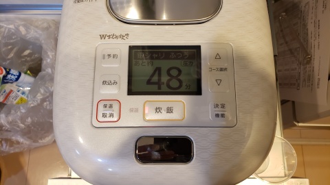 給水⇒炊飯⇒蒸しを含む炊き上り予想時間は48分。