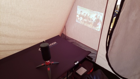 先日、早々に寝てしまって出来なかったプロジェクタースクリーン[Anker/Nebula Capsule Ⅲ Laser]の検証。とりあえず、[ogawa/ロッジシェルターTCインナー5人用]をスクリーン代わりに映写してみたがどの面でも夕方から夜なら実使用に耐えうる感じ。風が強くインナーテントが揺れるのでフォーカスが中々定まらずヤキモキする。