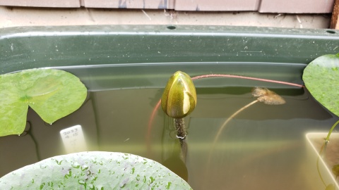 耐寒性睡蓮“マニー・サイアム”も1つ目の蕾を確認。