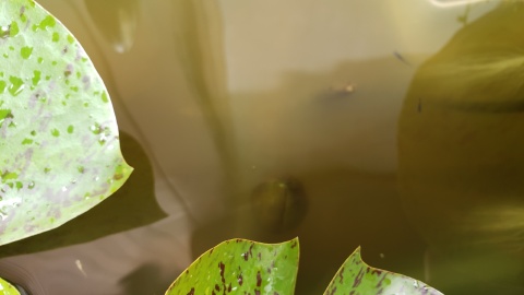 耐寒性睡蓮“マニー・サイアム”の最大葉径は14cm。