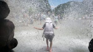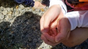 子供らは滝やスライダーで大はしゃぎ(^▽^)/。1cm程のオタマジャクシも沢山いる。