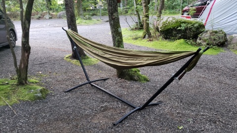パラシュート生地のハンモックは安価且つ丈夫で速乾性もありコスパが良い。