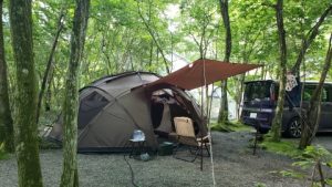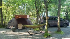 今回の利用サイトは電源付“B-2サイト”。キャンプ場における計測最低気温は18℃、計測最高気温は30℃。熱帯夜ではなく健やかに就寝することが出来た。