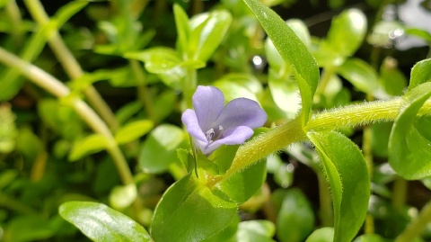 “ウォーターバコパ”の繁殖力は高い。良く観たら紫色の小さな花が咲いている。