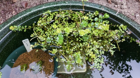 極小鉢の“ウォーターコイン”は爆殖もせず元気に育っている。内鉢を小さくすることにより程よく成長が抑制されている感がある。