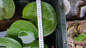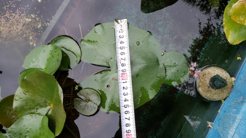 品種不明の“姫睡蓮白”の最大葉径は16cm。