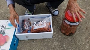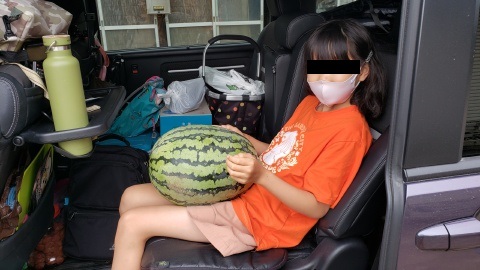 実家の母より今年の梅干しが完成したとのことでお裾分けを頂く。娘も巨大ラグビー西瓜を収穫(^▽^)/。