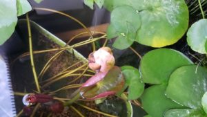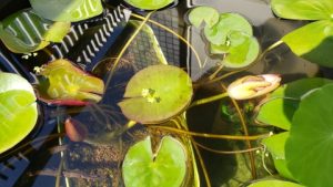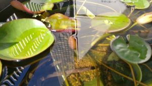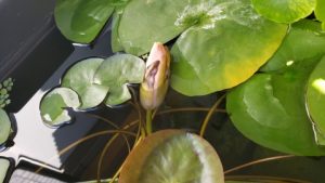 開花間近と思われる温帯睡蓮“マンカラウボン”の蕾を確認!