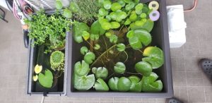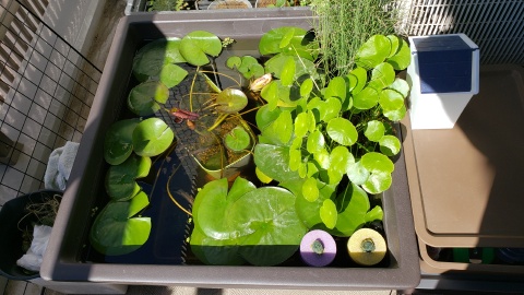 容量78Lのプラスチック製の角型容器[チャーム/睡蓮鉢 凛RIN角型M]に引っ越し。