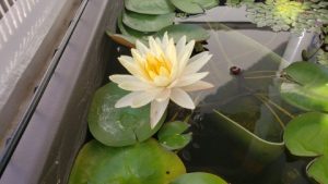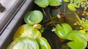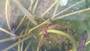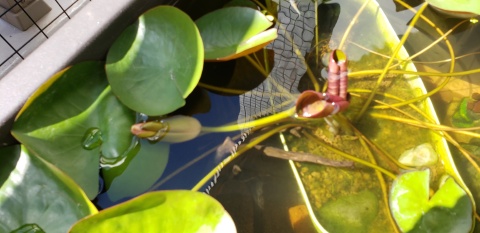 2番目の蕾が水面上に顔を出している。二輪咲とはいかなかった。