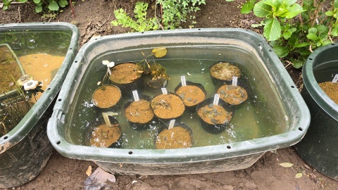 当初、親株睡蓮を入れようかと思ったが、子株植付ポリポット用として使用。“マンカラウボン”はKDさん、“マンカラウボン”“マニーサイアム”はTMさんにそれぞれ譲渡。