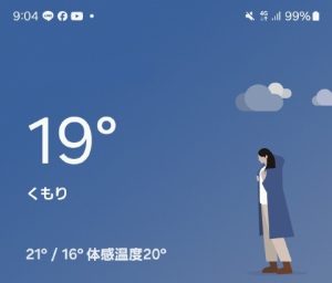 2025年9回目のテニスはクレーコートでゲーム練習会。スマホ現在地気温も19℃で風もなく絶好のテニス日和♪