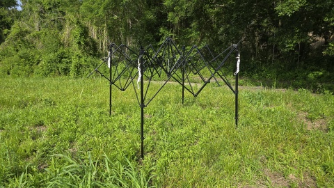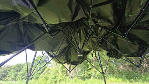 脚フレームを5~6割方広げる。広げ過ぎると天幕を被せ難くなるので注意が必要。フレームはスチール製だけあって重いが強度は高そう。