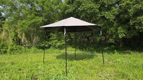 脚をもう1段階伸ばし最大長にする(上段位)。タープ下にいても開放感があり、タープ下で料理をした場合でも匂いや煙が中段位よりも抜け易そうな印象。