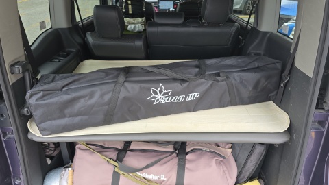 ラゲッジベッドキットの上段の手前には全幅が長く水平に入らず。
