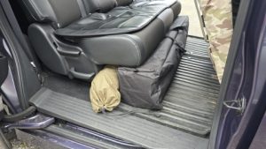 [アイリスオーヤマ/HUGELワンタッチシェード]を格納したままだと少しはみ出てしまい[SHIMANO/VACILAND-PRO 40L]が2列目足元に入らない恐れあり。