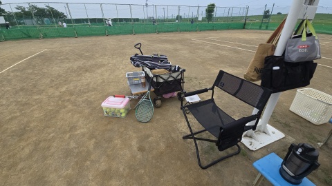 2025年10回目のテニスはクレーコートで4時間ゲーム練習会。曇天で開始時の車温度計は26℃、スマホ現在地気温は22℃と高くないが湿度が高く汗が止めどもなく流れてくて思いの外シンドイ(´;ω;`)ウゥゥ。水分補給を小まめにしないと脱水症状のリスクあるな。
