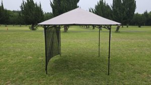 未検証であった天幕シートを付けたまま撤収できるか否かを検証してみた。天幕シートを付けたままフレームを畳むことが可能だが、4点の接続点が解除されてしまう。