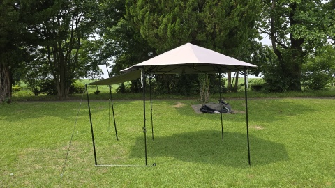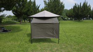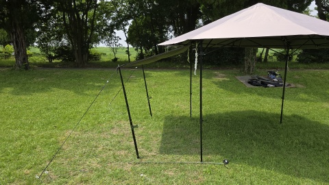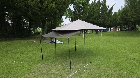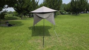 [SOLO UP/ワンアクションタープM-1424]の汎用サイドウォール2種のポールアレンジを実検証してみた。