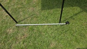 160cmポール*2とサイズウォール中央に移動し半翼をポールにクリップ留め。上部空間に余裕のある雨除け&日除けスペースを拡張することが出来る。