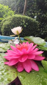 2025.6.26父親撮影。耐寒性睡蓮“ローズマグノリア”との2連咲。