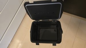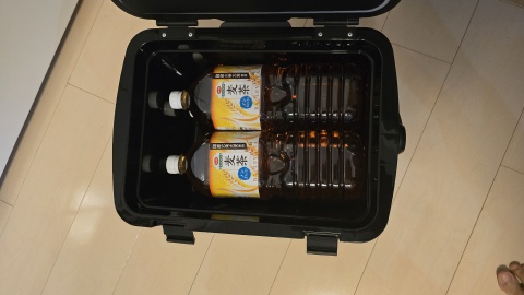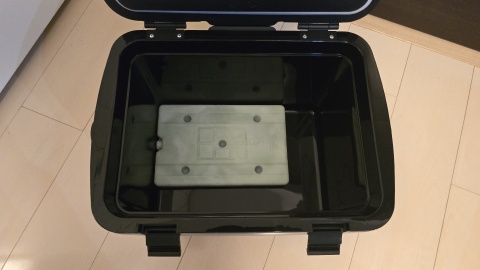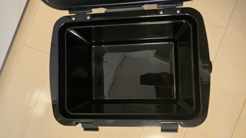 2ヵ所のロックを外し、蓋を開く。容量15.1Lだが2Lペットボトルを横に収納できるだけの内寸が確保されている。