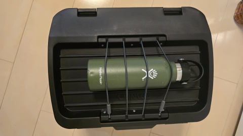上面にはバンジーコード(ゴムロープ)が設けられており、水筒ボトル等を固定できるようになっている。