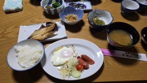昨日より天候は回復しているが時折大雨と強風が吹くため、海水浴は中止。チェックアウト後速やかに解散の運び。