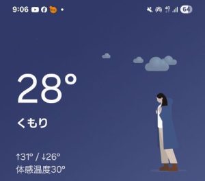 21時頃に自宅着。車温度計及びスマホ現在地気温は共に28℃。