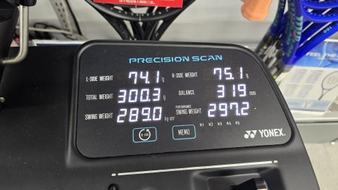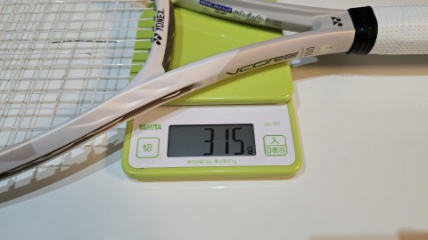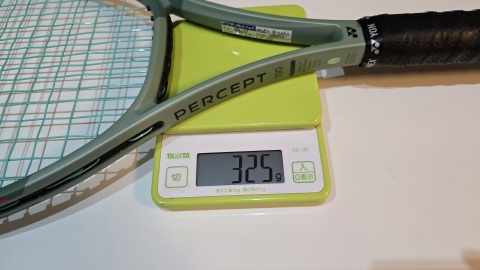 [YONEX/パーセプト100]を再計測したところ、[YONEX/Vコア100]より5g重い325g。