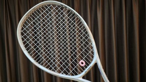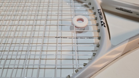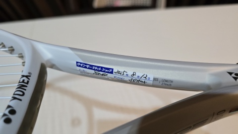 ガットは[YONEX/パーセプト100]と同じポリ回転系の[YONEX/ポリツアーレブ1.25mm]でカラーはホワイトを選択。テンションは50Pで張り上げ。ガット及び張り代含めて34,680円(ラケット本体33,440円)。